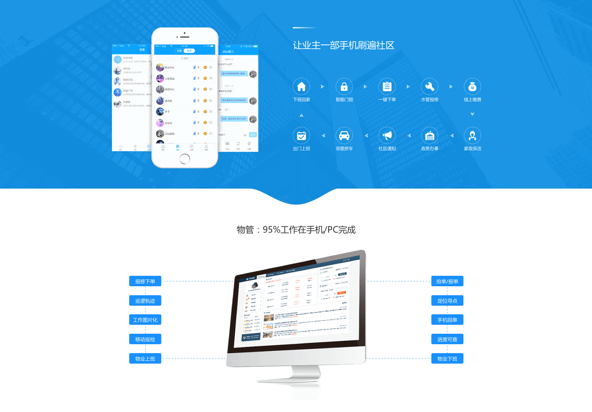 支持多行业多场景,覆盖多种社区物业O2O范围大型房地产商