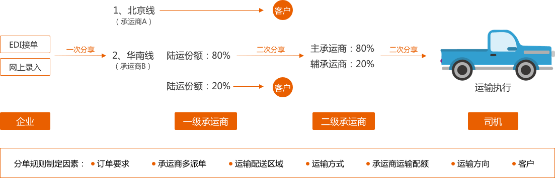 提供多承运商协同作业平台,适应中国运输的多级派单车辆的五维状态管理