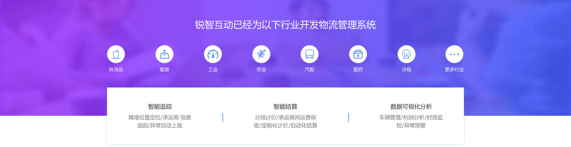 快速与下游承运商进行无缝对接 一键分单,快速智能匹配承运商 物流可视化跟踪,货物动向一手掌握 多样化的数据报表,个性化的数据分析承运商